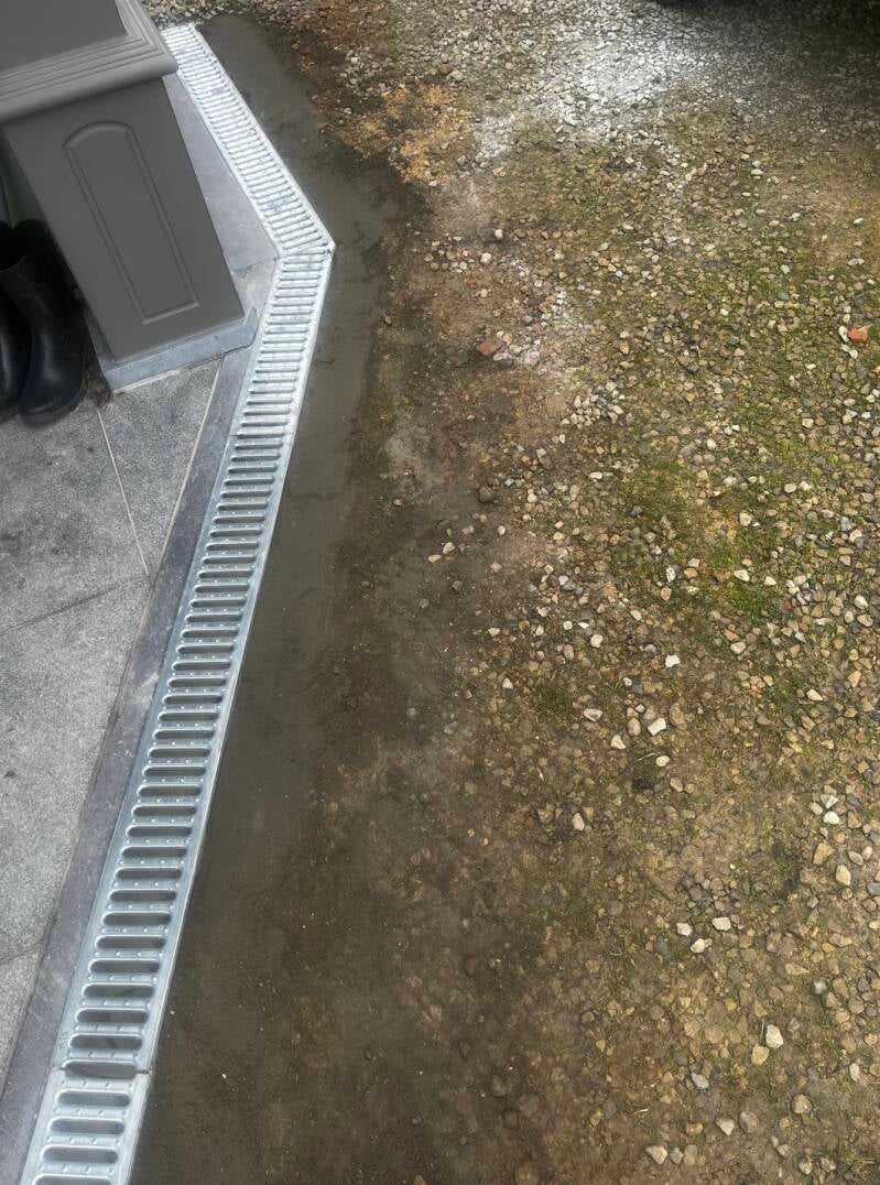 Hiervoor werden afvoergootjes geplaatst en aangesloten op hun regenwater afvoer leiding.