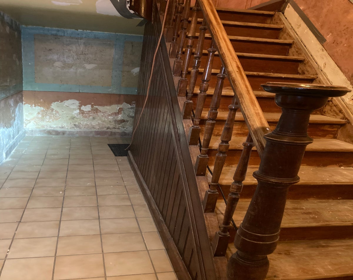 Na het Luchtgommen van de trap deden we de renovatie van de muren en vloer.